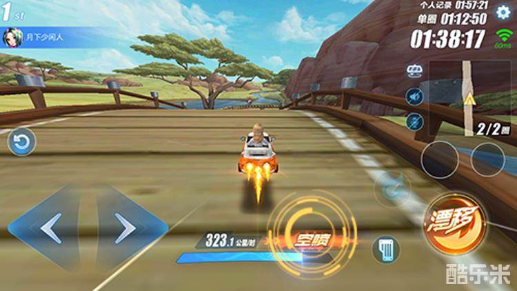 3、双喷:按照上述条件完成所有操作并无碰撞情况的车手,在第一个小喷亮起后接连点击2次小喷就能成功进行双喷操作了。