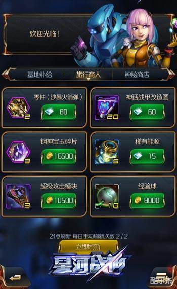 V8贵族相比之前等级的贵族而言,最大的变化就是V8贵族永久开启了神秘商店。神秘商店所出售的物品都是平时商城里难得一见的宝物,不仅有机甲零件、机甲图纸、就连火神宝玉和经验球等玩家提升机甲能力必备的道具也一应俱全。神秘商店每天12点和21点刷新,为玩家提供更多选购的商品,玩家也可以手动刷新神秘商店1次。除了神秘商店,旅行商人也是玩家经常光顾的地方,旅行商人出售的商品大多都是以金币购买,让钻石不足的贵族玩家继续享受贵族特权带来的各种福利,刷新次数为2次。