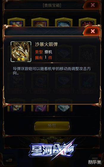 贵族等级提升,除了各项功能得到开启外,其附赠的礼包也是贵族的一大福利。贵族V8等级的礼包是土属性的沙暴火箭弹僚机,该僚机威力强悍,搭配沙暴领主机甲更是如虎添翼。再也不用通过随便一点点收集僚机材料合成僚机了,二星僚机助你称霸星际。