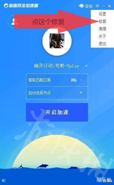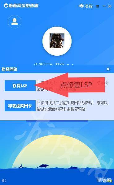 首先打开加速器,找到网络修复(如图)这里已海豚为例。