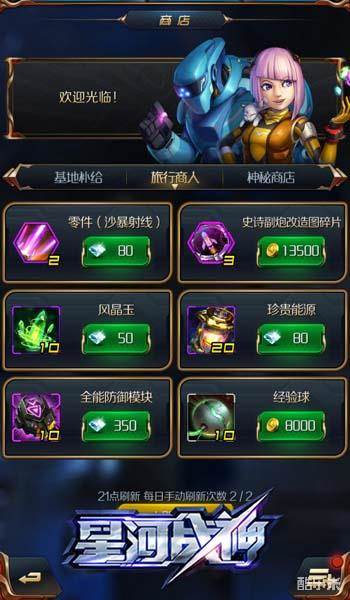 神秘商店作为V12贵族购物的天堂,玩家可以在神秘商店淘到宝玉、图纸、机甲碎片等珍稀道具。同时每天还可以额外重置1次神秘商店,让土豪的气息更加浓郁。
