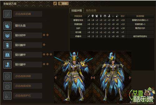 优点:增强了雷属性武器的伤害并增加了翻滚时的无敌时间,技能的点数+13也让强化技能效果变得更加方便。精灵的守护技能也让猎人的生存几率得到了一定程度的保障。这套装备个人认为较适用于近战武器。