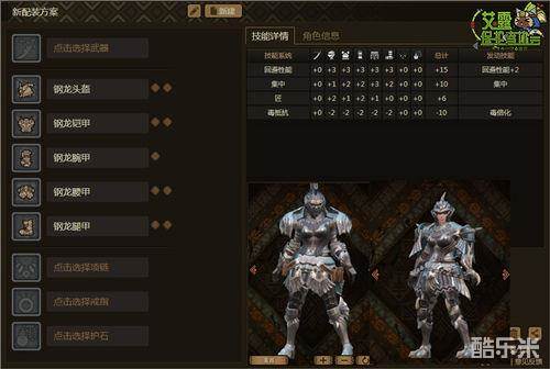 套装属性:回避性能+15(显著增加翻滚的无敌时间)、集中+10(大剑、锤、弓蓄力时间缩短5%;双刀鬼人槽积攒效率+15%;太刀练气槽积攒效率+5%)、毒抵抗-10(进入毒状态的时间延长)以及近战:匠+6(无特效触发)/远程:装填术+6(无特效触发)
