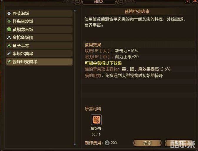 酱烤甲壳肉串 攻击力加15%