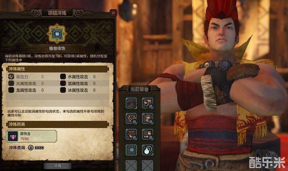 猎人到达lv25就可以开启千狩猎,完成1次千狩猎后,就可以在梅杰波尔坦NPC千狩猎看板娘那里换取项链,建议造物理攻击项链【教官的旧项链】(完成主线对决埃兰,伊达宗师也会送一条【教官的旧项链】),记得右键点击佩戴才生效。这条项链可以到罗师傅那里,一直派生到攻击力加36,材料可以通过千狩猎和猫猫币兑换获得。需要的银币也不少,请各位新手猎人慢慢升级。
