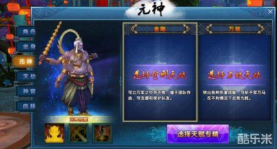 变幻元神需要选择一个天赋专精;可以根据本职业天赋介绍选择自己喜欢的天赋,选择专精后,只能学习该专精的技能;专精将影响技能战斗的倾向。想要更改专精可使用重置天赋专精功能,将会重置专精和还原所有天赋点。