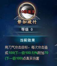 势如破竹:用刀气攻击目标,每次攻击造成100%+70点的真实伤害。