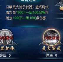 灵火附武:召唤灵火附加于武器,造成施法者攻击100%+100点伤害。伤害爆炸的技能,这是不论是前期还是后期的绝对主力输出技能,能点就点。