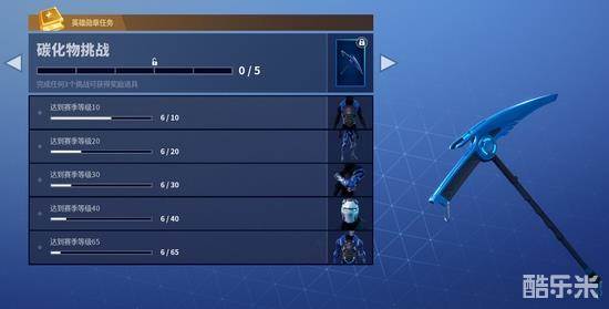 堡垒之夜碳化物挑战是第4赛季新出的额外任务之一,完成对应的任务就可以解锁额外的碳化物套装的附加装备,等到全套装备解锁,你会发现自己的碳化物角色简直焕然一新。