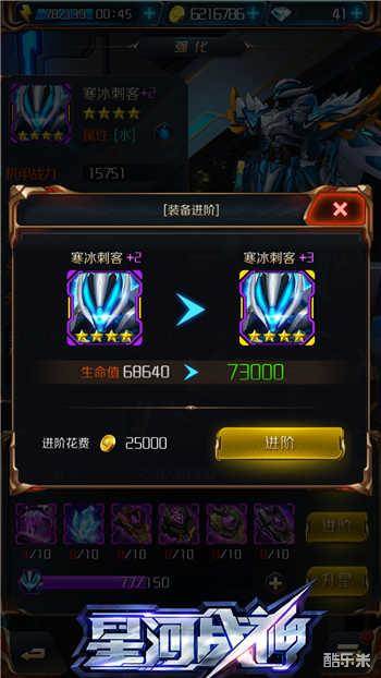 2.寒冰刺客要注意尽快提升星级和进阶,后期这两个是快速提高寒冰刺客攻击力的关键,尤其是进阶,千万不能因为它加的战力少就不进阶了,恰恰相反,进阶可以有效提高寒冰刺客机甲的杀伤力。