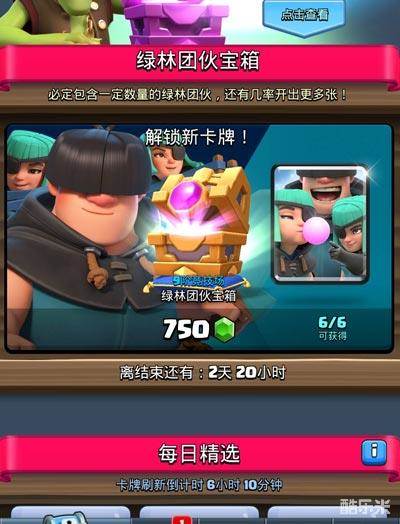 绿林团伙宝箱,单价750宝石一个(价格跟玩家的竞技场阶数挂钩),每个号最多可以买6次,活动期3天,它拥有以下这些特点: