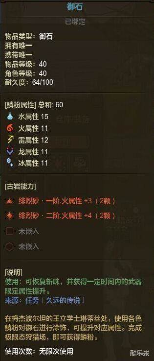 今天带来的是极限攻略路线与御石成长测试,御石的属性总和会在20、40、60发生颜色的变化,对应的是绿色,粉色,蓝色,每个单属性成长的等级需要的鳞粉都是一样的。