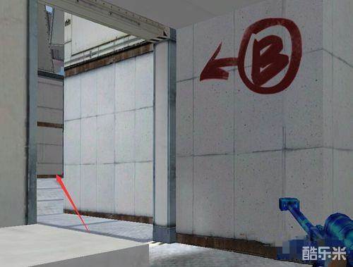 当开局以后,很多冲锋的队员选择了一起打A,那么最后留下一个队员守B,就算没有挡住也可以汇报一下战况,所以这个位置还是比较重要的,如上图所示的位置是可以看到B主道来的敌人,一枪打完可以躲到虎口内~