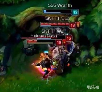 Wraith是SSG的辅助选手。在一场团战之后,全员存活的SKT对其进行了集体调戏。