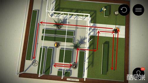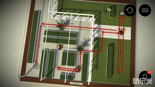 这个关卡相对比较容易,敌人只有2个,比较容易推算出他们的运动规律。下图是先去拿公文包然后通关的路线图。