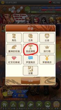 挑战课题分为收集类和成就类,从游戏页面底部“菜单”按钮进入:
