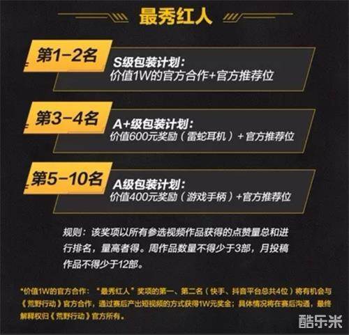 5.官方会根据作品的总点赞量、超额点赞量(抖音50个点赞,快手20个点赞)的视频数量等多维度来进行红人评选,评选出“最秀红人”和“优产小能手”,并给予对应的丰厚奖励。