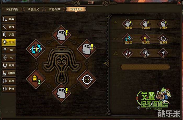 武器天赋:武器天赋可说是武器招式的延伸,让各种武器招式变得丰满有力。猎人等级达到LV20后,通过“不安定环境”狩猎并完成指定任务,可随机获得一到两类武器的天赋书。也可参与各种活动兑换或打开特定礼包随机获得天赋书碎片。