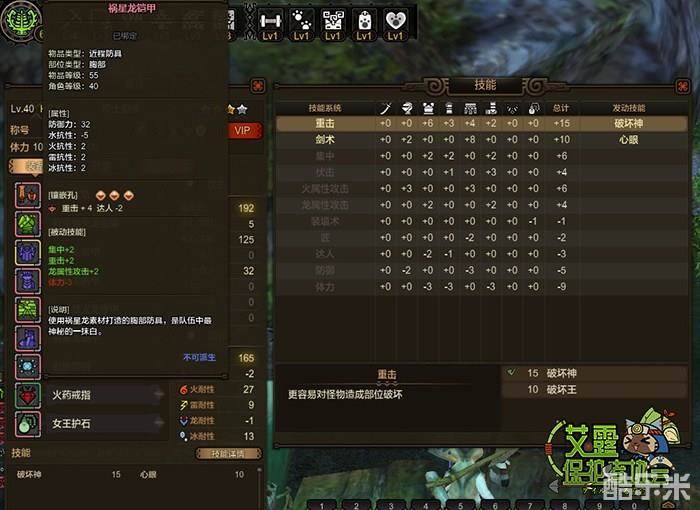 被动技能:每个防具都有2-3个被动技能的加成,达到一定数值即可发动技能。猎人可自己的根据需求锻造不同的装备相互搭配,激活技能。