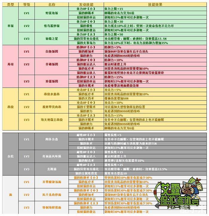 本篇最后要讲解的,是一个比较广泛的部分。它包括了:消耗品、调和道具、猫饭、称号等。这些可以临时增强猎人体力耐力上限、攻击力、防御力等为狩猎提供便利的一切因素。
