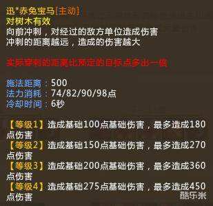 解析:基础伤害275,就是说无论他在什么位置,只要能刺到他,就是275起步的伤害,距离越远伤害越高,但是要小心敌人利用走位躲掉技能。技能的施法距离是个小半圈,圈子外围就是最大伤害的距离。要多练练这个技能,算准距离,不然会闹笑话。前期主学技能。