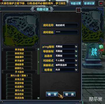 地图设置:房主专用,可以设定房间名称、密码、地图类型等设置;