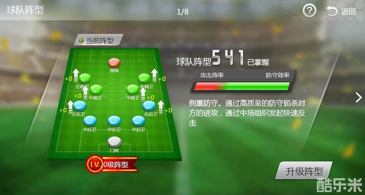 除创建球队时所拥有的默认阵型,其它所有阵型均需要花费欧元购买激活,阵型初始为0级,需要花费阵型升级卡来升级阵型,等级越高,所需阵阵型升级卡数量越多。