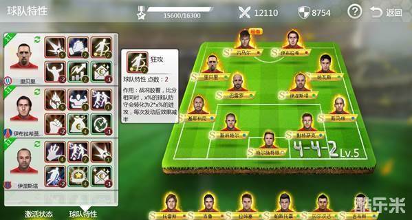 战斗特性:当场上球员达成战斗特性,则球队综合能力将会提升;