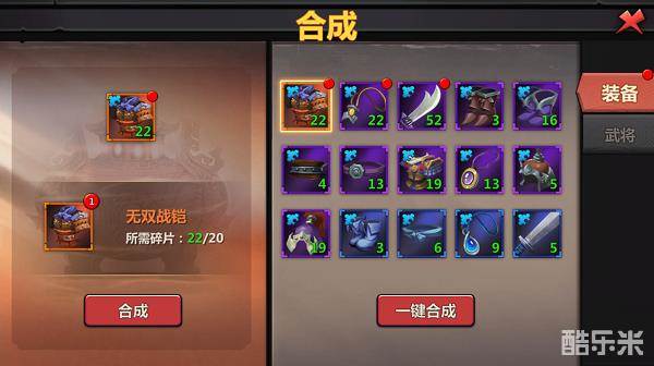 紫色武将:需要40个武将碎片合成;
