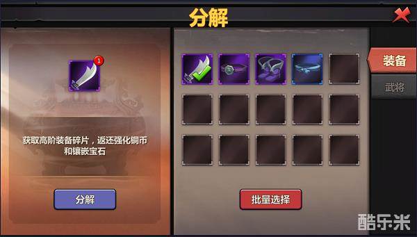而且还有几率得到高一等级的装备碎片,所以大家不用担心分解会不会吃亏。