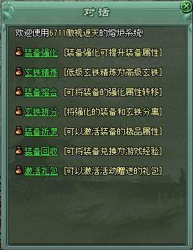 这个副本系统是没有时间限制的哦,但是各位要认真看清楚哦,它是有次数限制和等级限制的哦。千万别把能打到高级装备的副本次数给浪费了哦。普通BOSS,高级BOSS还有炎黄战场都是升级打极品装备的好去处哦。 “炉”字,顾名思义,就是锻造装备的意思哈,是熔炉系统。如图: