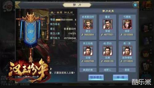 蜀国:全服第一势力梦海之巅(梦),拥有三名龙堡玩家,君主【忧郁de寒冰】,【西府赵王】,【倾城·无花】,雄踞益州。全服第二势力恶魔军团(楚),君主恶魔·小宝(小宝)战力无双,带领势力一统荆州,一时蜀国两大势力难分伯仲,一场惊世大战已成雏形。