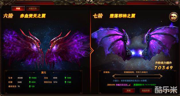3:升阶需要消耗神翼升阶石翅膀升阶,每次进阶会增加祝福值,祝福值达到上限后即升阶成功。