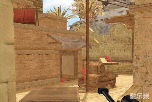 这个点位是位于复活点左边的通道的第一个窗口,这个窗口因为有箱子的掩护,所以还是比较安全的,而如上图标注的位置可以很好的狙击到敌方的玩家!