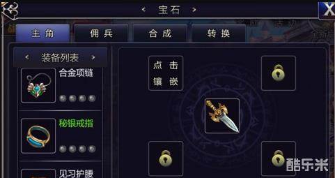 一件装备有4个镶嵌孔,每个孔可以镶嵌一个宝石,一个装备中不能镶嵌相同属性的宝石,佣兵的也可以镶嵌宝石,宝石可以进行合成。