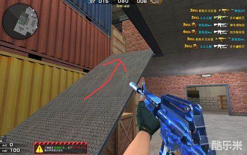 大家只要在出生点出生后,往后看!!就可以看见一个斜坡似的铁搭子,只要小伙伴们顺着走就可以上屋顶了!提醒一句:屋顶最好是玩狙,因为机枪如果不能一击致命的话,长时间的露头会吸引敌方集体仇恨哦!