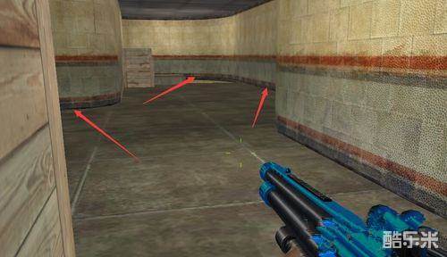 这个位置也是一个很阴险的位置,这里是B洞的盲点,在这里可以看到红色箭头标记的这三个方向出来的玩家,无论是冲B洞的玩家,还是从B包点进入B洞又或是从B1上来的玩家都是可以看到的!很适合阴人!并且这里也是一个复活点哦~大家只要紧靠里面的墙就不会被复活玩家第一时间发现的哦!希望这两个点位可以帮助到大家哦~