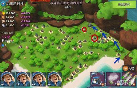 炸掉2个小加农炮,然后坦克下去拆防御建筑,这边坦克会被震爆弹冻住,不过不碍事,最后能在安全位置拆掉基地。