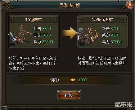 如果想要转换,也很方便。点击特技弩兵营,然后点转按钮即可。