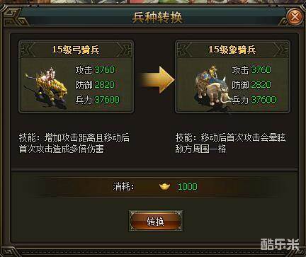 游戏《三国群雄传》最近经过更新后,玩家对四大兵营可以进行二次改造了。改造之后的兵种会更加强大,威力战力技能都会提升一个档次。下面,小编就来给大家分析下特级骑兵营中的弓骑兵和象骑兵。