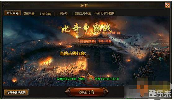 盟重争霸赛:周二、周四、周六、晚上八点以行会为基础的行会争霸赛