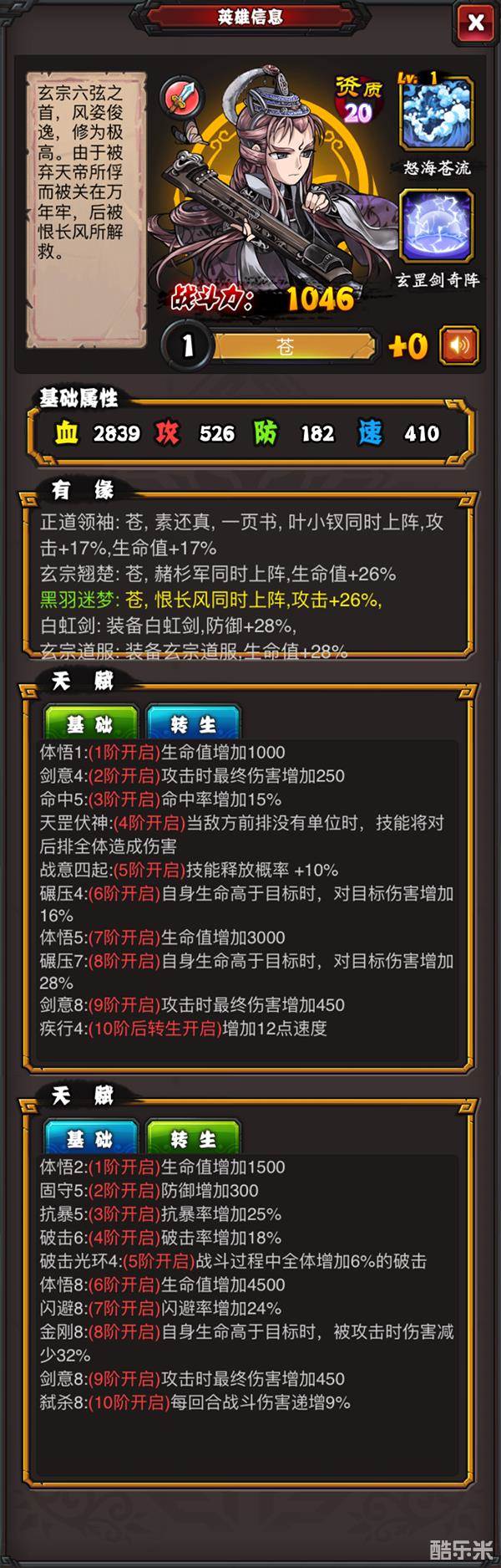 基础属性:血2839 攻526 防182 速410