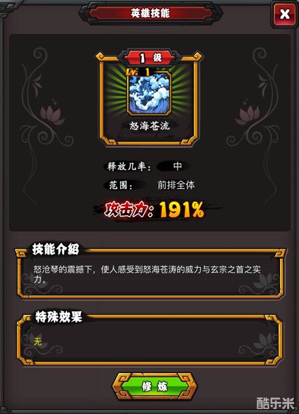 释放几率-中 范围-前排全体 攻击力-191%