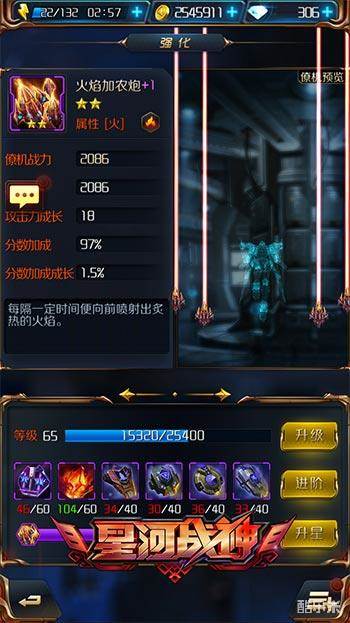 火焰加农炮是游戏中的火属性僚机,它的特性在于每隔一定时间便向前喷射出炙热的火焰。当火焰加农炮进入暴走状态时,四个僚机将根据机甲的移动方向进行灵活的打击。在攻击方面,火焰加农炮即具有灵活性,又具有随机性,特别是集中打击时也有不错的贡献。其零件主要在精英28关和32关获得,培养起来相对容易。