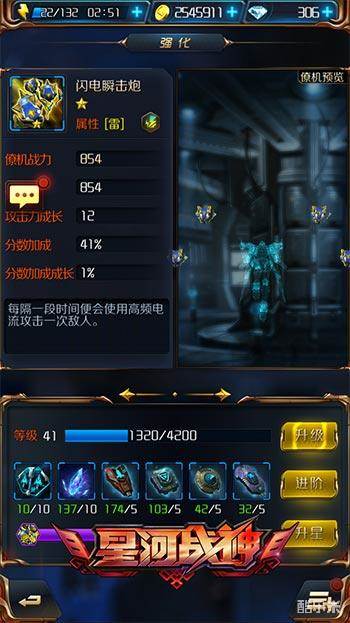 闪电瞬击炮是游戏中的雷属性僚机,主要开展电流攻击,它的特性在于每隔一段时间便会使用高频电流攻击敌人一次。在实际战斗中,由于使用起来比较鸡肋,所以使用闪电瞬击炮的玩家并不多见。但是进入高阶培养阶段后,闪电瞬击炮的战斗力也会弥补一定的不足。其零件主要在精英26关和42关获得,培养难度中等。