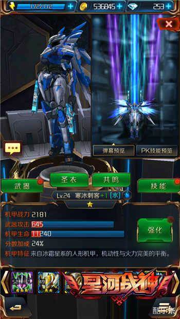 [寒冰刺客]一星最初级的机甲,技能:[螺旋冰球]、[极寒水泡]、[冰封装甲]、[静谧之力]。点评:[寒冰刺客]属性水,技能伤害一般,攻击伤害一般。暴走模式下攻击的范围十分宽,并且体型较为小巧便于躲闪技能,但是因为是初级机甲,并没有太大的优点一般都会被遗弃。小编也认为没有主练的价值,但是玩的时间长的玩家看到[寒冰刺客]都有一些亲切感,毕竟它是从我们是新手的时候就一直陪伴我们的机甲!