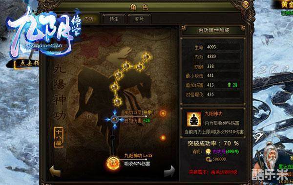 2、激活内力吸收伤害能力,越高阶九阳神功,吸收伤害越多。