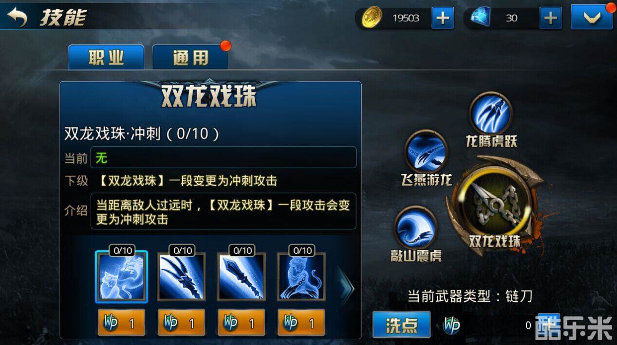 双龙戏珠•链刀(链枪):链刀(链枪)造成的伤害增加,建议必点