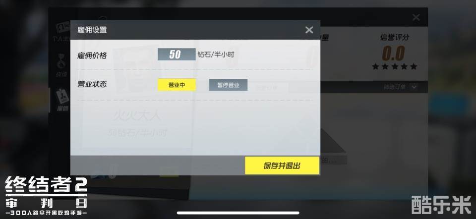 最后玩家可以根据自身情况设定“营业状态”是否开启,在“营业中”时就可以坐等订单上门,而在“暂停营业”时则可以享受无打扰的自由战斗。