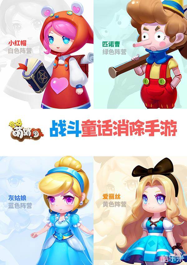 在黄、绿、蓝、白四大阵营中,还有我们童年就已经熟悉的那些童话女主们,她们组成了最有三消实力的女团,集结助力《童话萌消团》全平台上线!